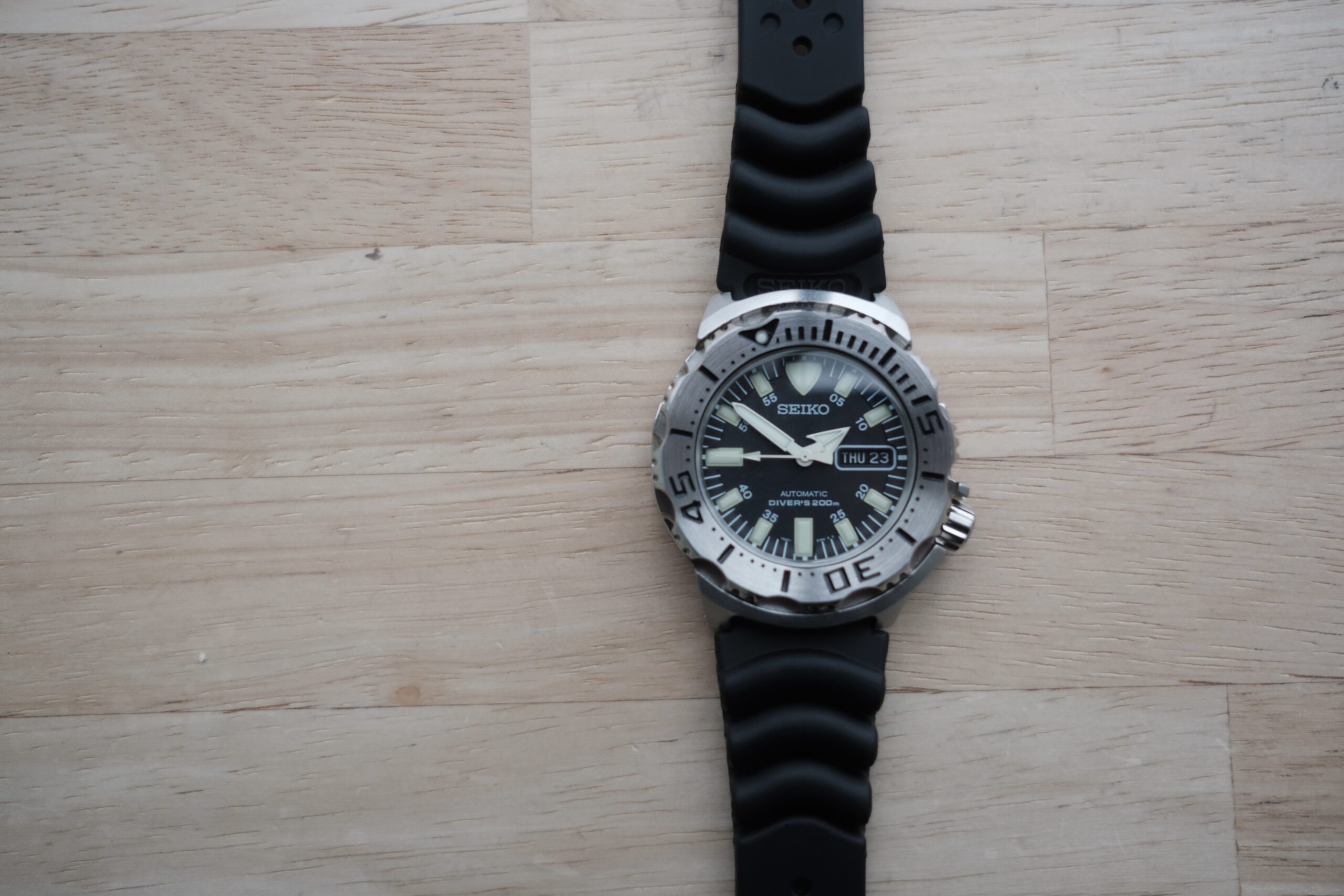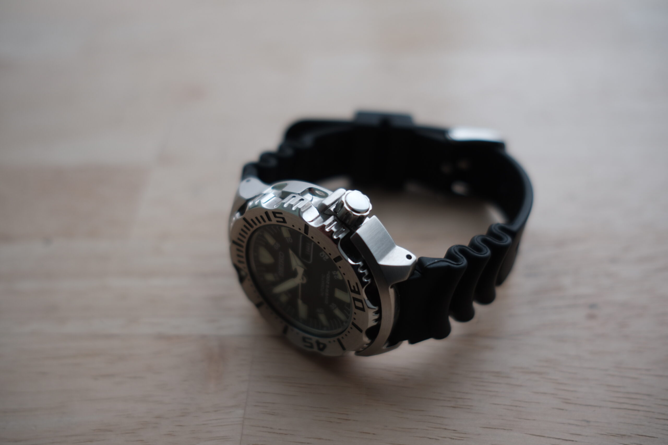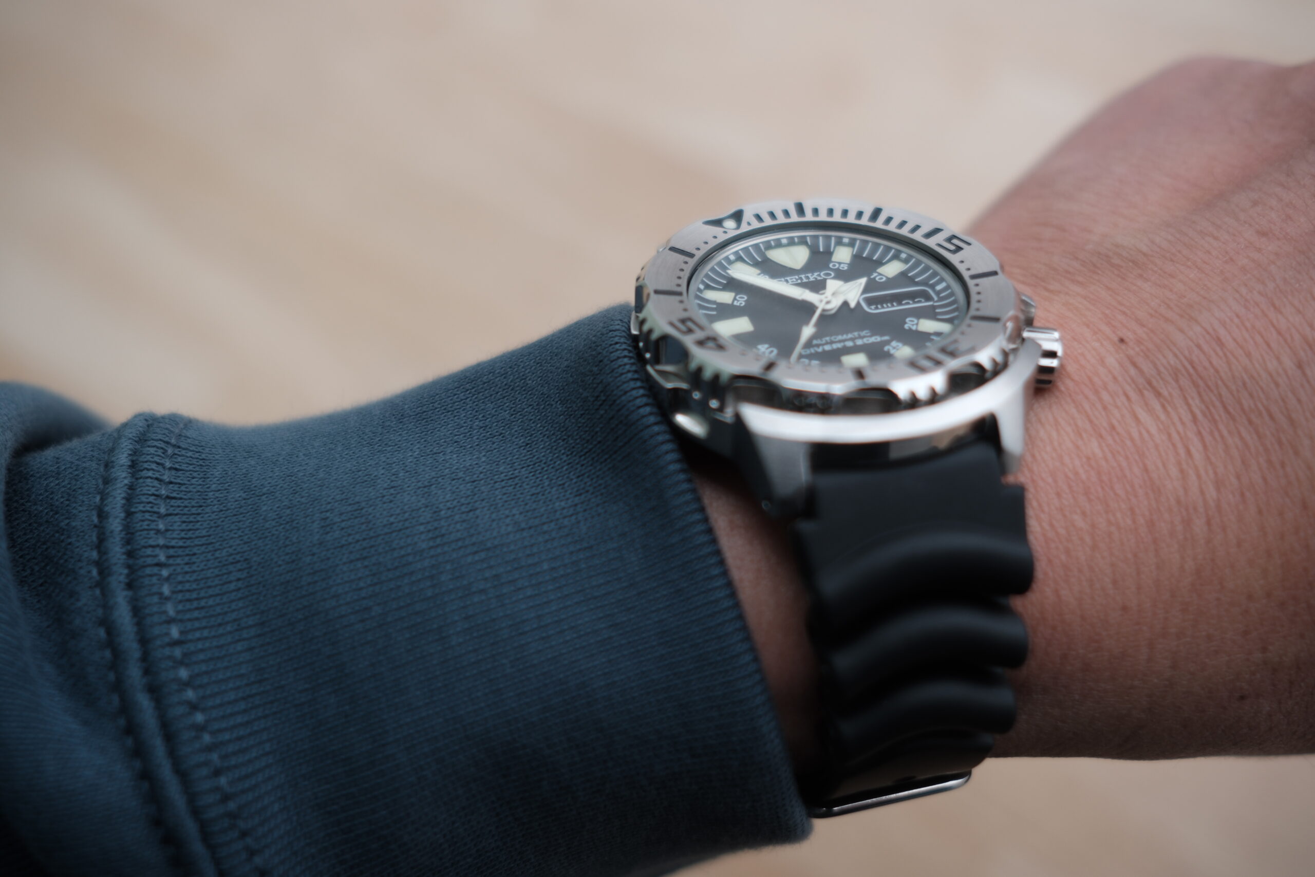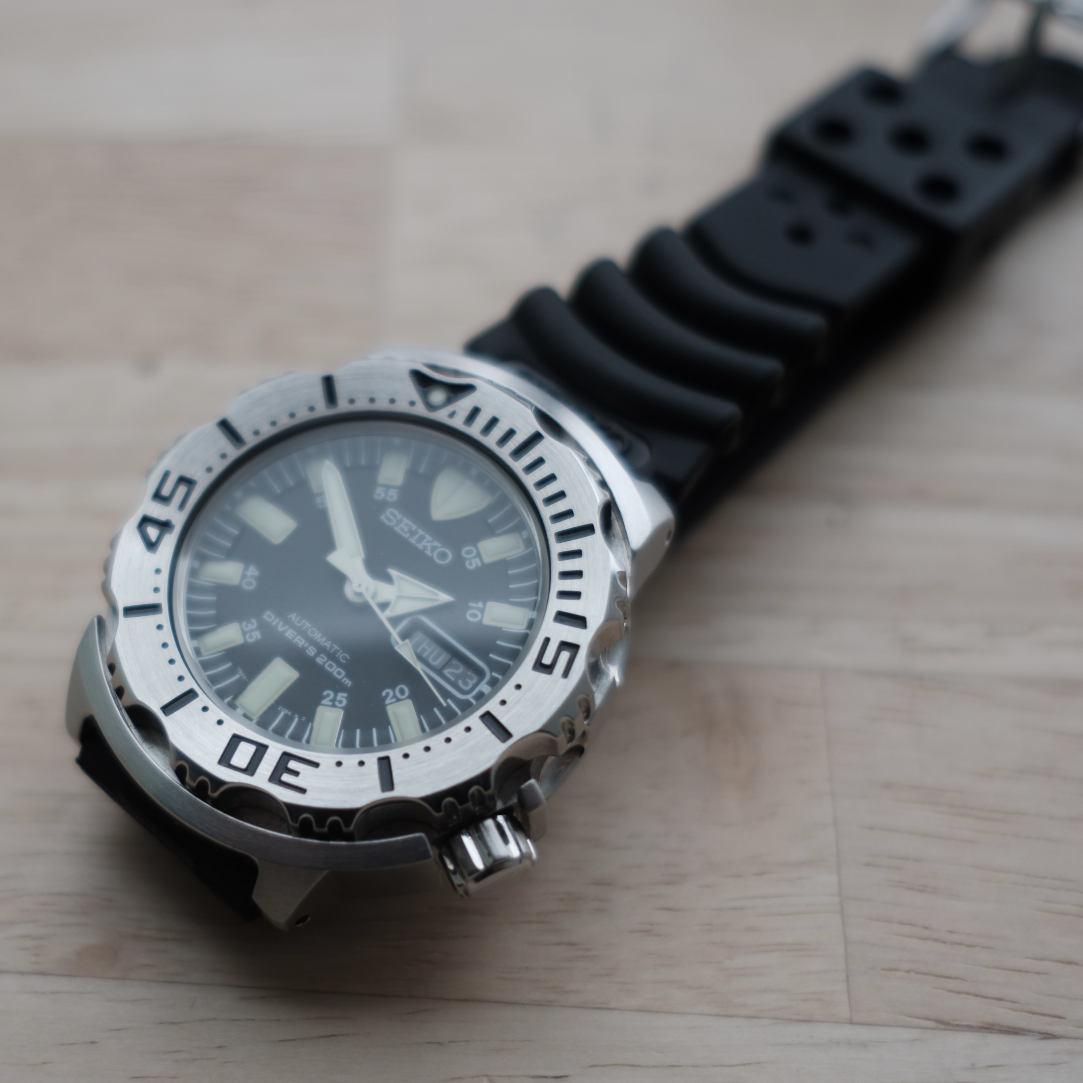 それに見た目もなかなかかっこよしです。せっかくのモンスター、せっかくのダイバーズウォッチなので、ラバー仕様も試してみたいと思ったのがきっかけです。