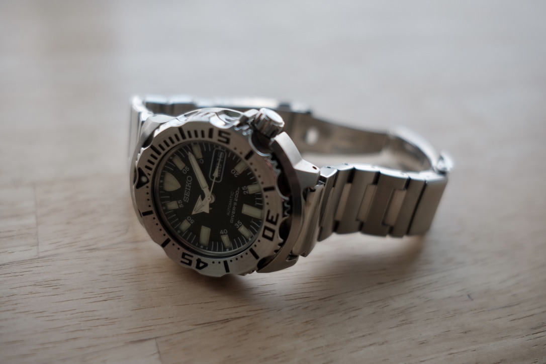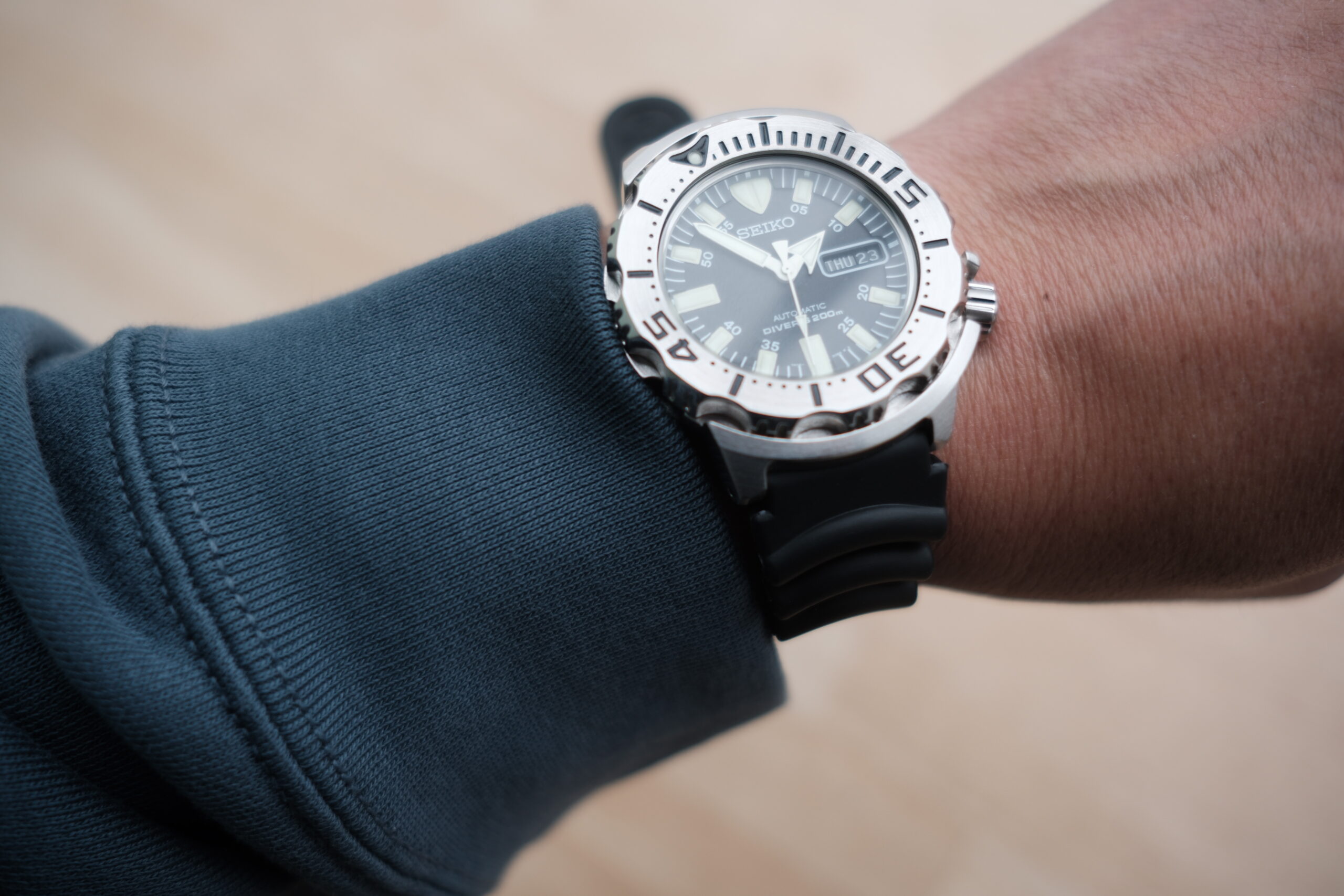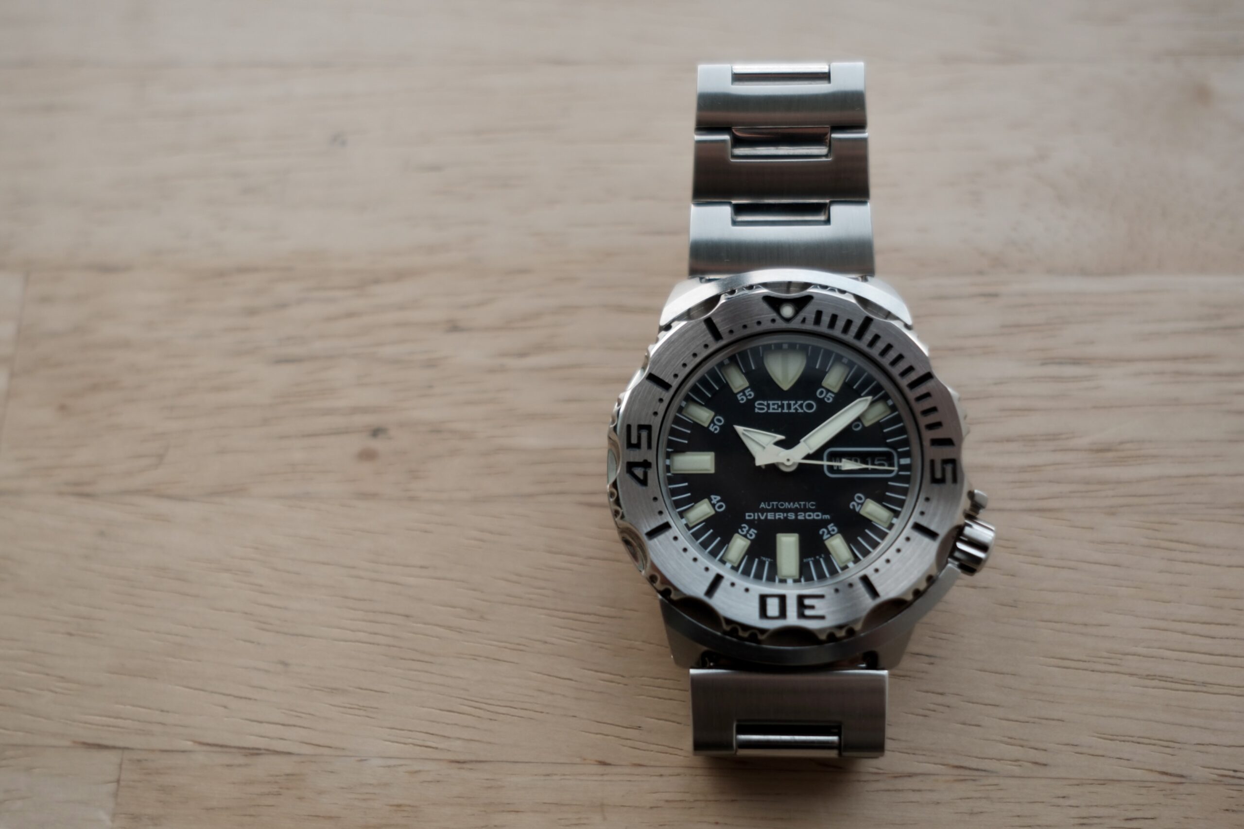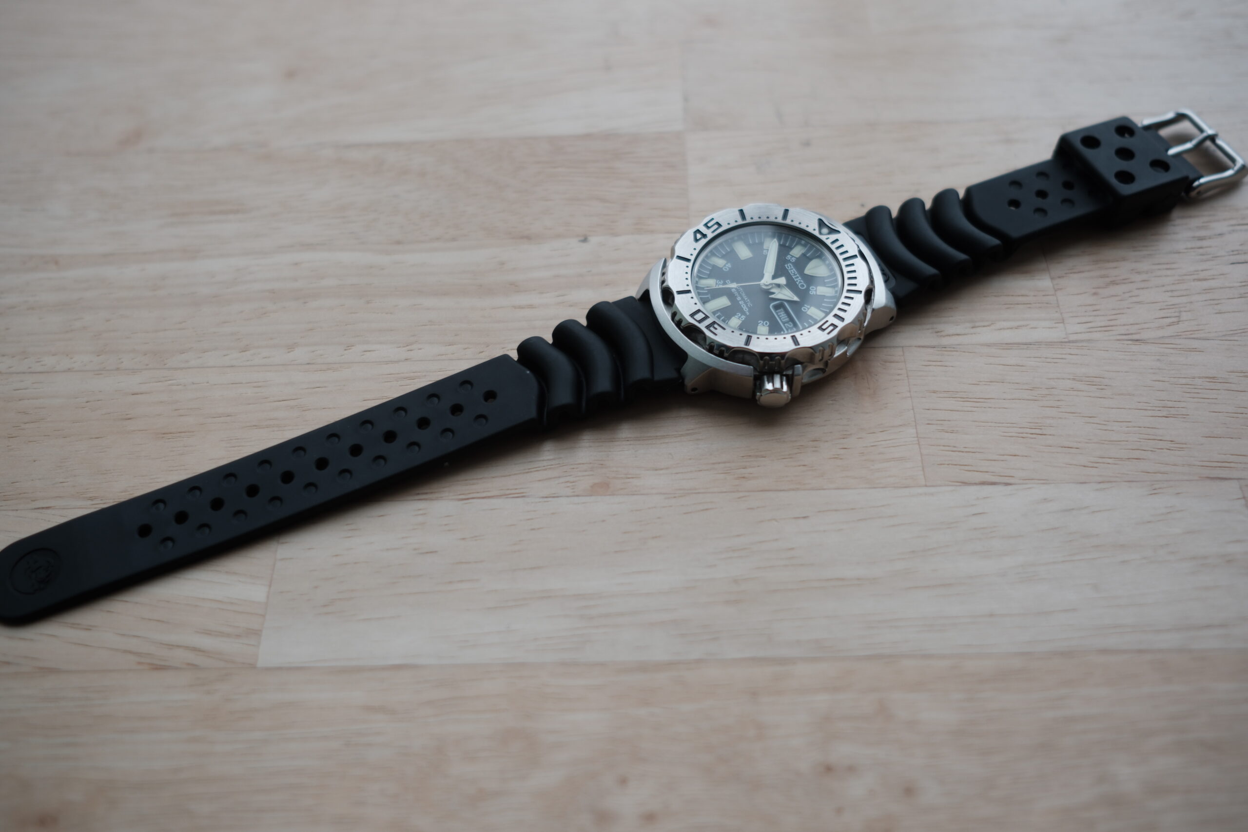 それに見た目もなかなかかっこよしです。せっかくのモンスター、せっかくのダイバーズウォッチなので、ラバー仕様も試してみたいと思ったのがきっかけです。